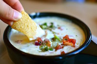 Torchy’s has, as their slogan goes, “damn good tacos,” but the queso sure isn’t bad either. Though it’s sometimes runny and sometimes thick, it has consistently good flavor and is creamy, not plasticky, with a little guacamole, a sprinkle of queso fresco, and some fresh cilantro and Diablo sauce on top. [pagebreak]