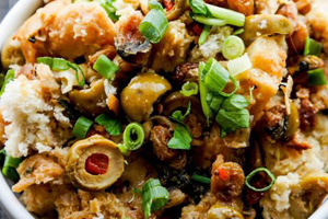 Keep your stuffing simple or we should say dressing. Stuffing is usually cooked in the bird, dressing is cooked outside of the bird. Stick with dressing, it not only cooks faster but it’s less prone to cross contamination.