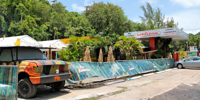 Roth marinates all the meats overnight and then seasons them with a house dry rub made of freshly toasted and ground spices of chili peppers, coriander, cumin, ginger, and other secret ingredients. He brushes them with a guava barbecue sauce, basting them before firing up the meats in the custom-built smoker and grills he designed. During the busy season and the holidays, he prepares Puerto Rican lechon by roasting his squash-and-watermelon-fed pigs to a golden crisp in the back of an old burnt-down Jeep he flat bedded and transformed into a rotisserie.