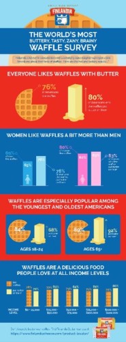 Ok fine, we’re not psychic. But Finlandia Cheese and Learndipity Data Insights did publish a new infographic today with the findings of a survey that included the waffle preferences of over 2,000 Americans. Of the individuals surveyed, 80% of waffle lovers top their stacks with tabs of butter and let it melt into little pools of buttery goodness. There’s syrup involved too, but you already knew that. We can only assume that the other 20% didn’t use butter ’cause they were making these Waffle Recipes instead.