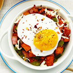 Ham for dinner … followed by ham for breakfast. You’ll want it with this Ham and Sweet Potato Hash. Ham is fried with onion and pepper then tossed with caramelized sweet potatoes and topped with salty Oaxaca cheese and a luscious runny fried egg.