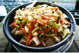 For a meatless option, head to concession stands where you can order the vegan burrito, which has chile marinated grilled vegetables, black beans and cilantro-lime cabbage.