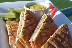 Red Sox fans have a lot of Latin food choices, like the Cuban sandwich available at El Tiante on Yawkey Way. The ham, pork and pickles sandwich, named for Cuban and former Red Sox Luis Tiant, is prepared on a six-inch Panini.