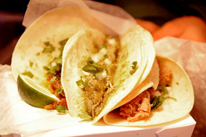 Still hungry? Try some elote, Latin corn on the cob; carnitas (pork) tacos, chicken Mole Pipian tacos, featuring a green mole sauce made from pumpkin seeds; or chile-marinated skirt steak tacos.