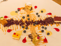 Criterión can be playful as well. Take, for example, the Dessert Placemat. First, a white silicone mat is placed over the tabletop. Then a cart arrives heavy with the tools of the trade–rich sauces, fresh berries, at least two flavors of homemade ice cream and half a dozen fresh made indulgences including tiramisu, key lime pie, cheesecake, and more. Then the pastry chef artfully arranges these ingredients on the mat until he’s created an edible tableau so ample that it comes with a deep spatula for mixing and grabbing.