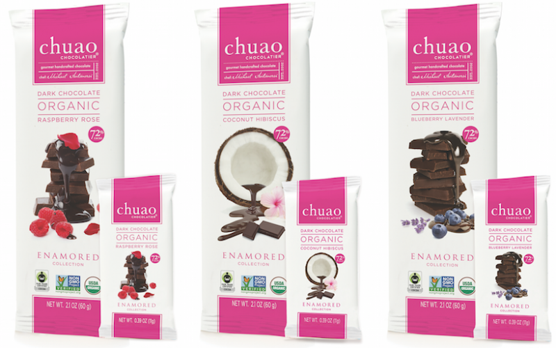 The bars are wrapped in an empowering message and we have another little love note on the chocolate itself. And to further that message, $1 for every 7 Enamored Collection bars sold will benefit Girls Inc., inspiring all girls to be strong, smart and bold ™. Enamored is such a beautiful team effort. The gorgeous flow wrap was designed in house (like all of our products) with a feminine flair for these elegant 60 gram chocolate bars that Chef Michael meticulously created. My part was the copy and it’s really a love letter to my mom, my sister, my best friend and me. Each bar has a unique message that I think many women need to hear.